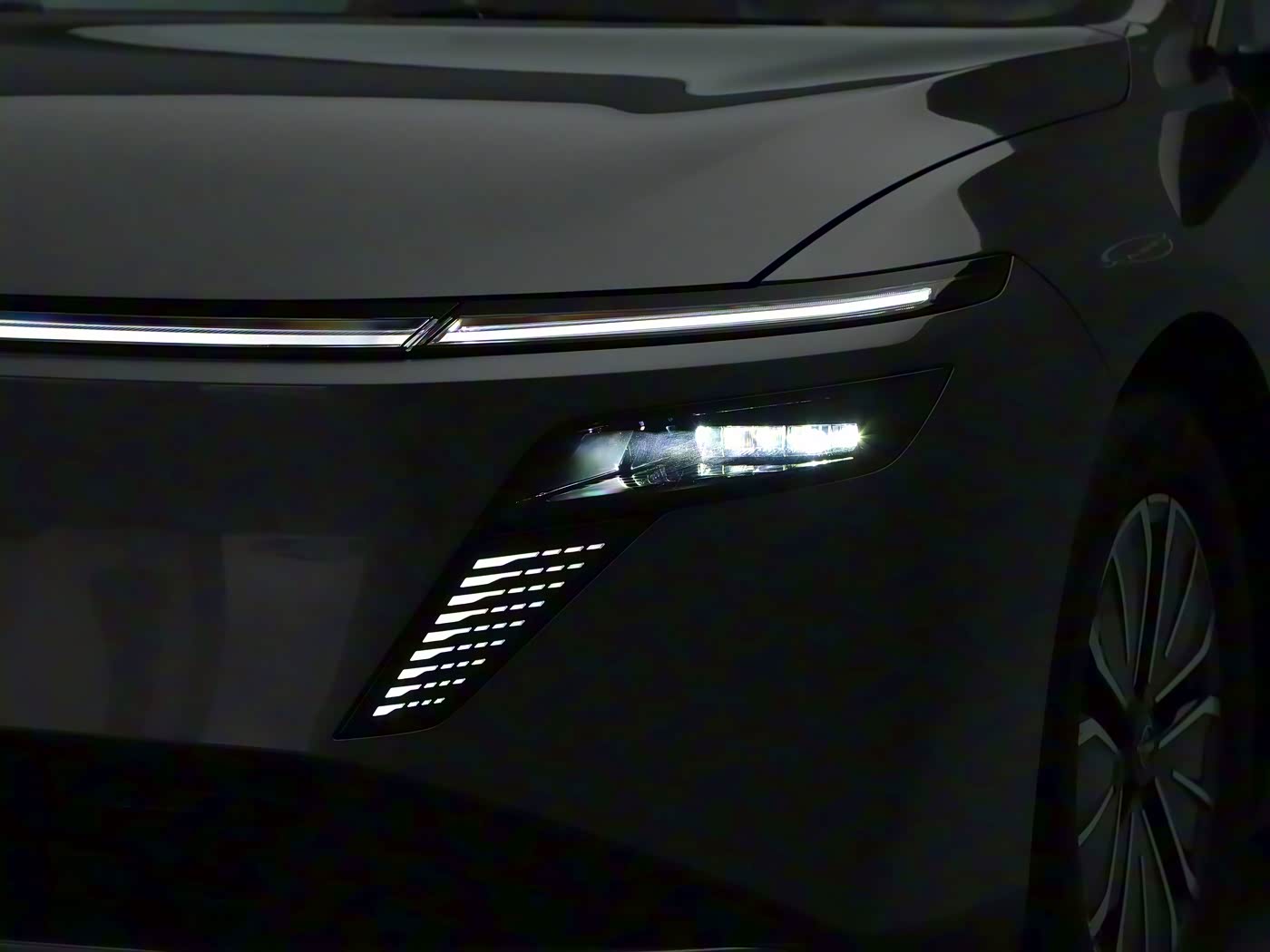 The side profile of the vehicle is quite sleek, adhering to the 0.618 golden ratio, and features pop-out hidden door handles. In terms of dimensions, the new car measures 4831/1885/1494mm in length, width, and height, with a wheelbase of 2815mm.