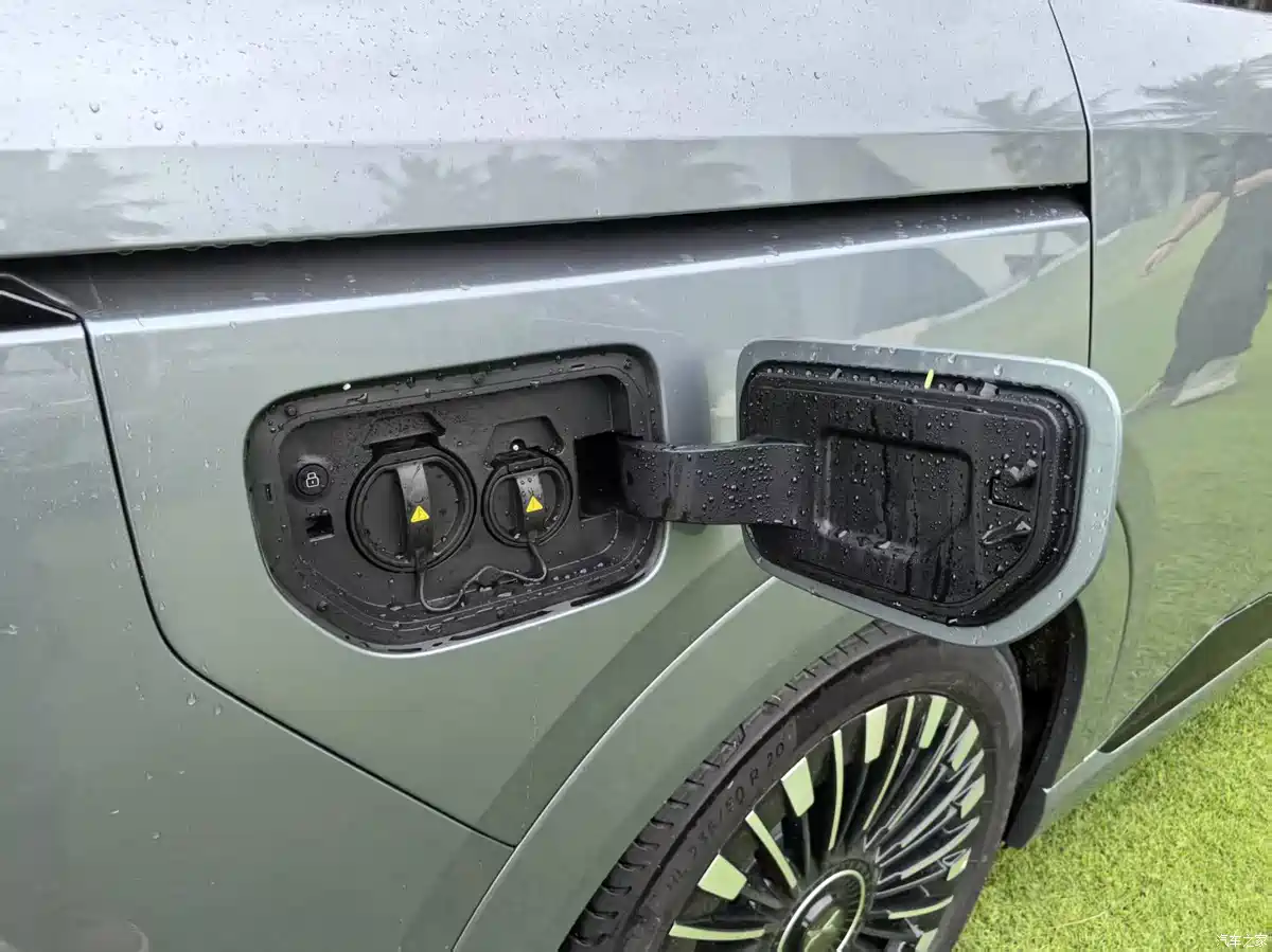 Compared with the pure electric version, the Xpeng X9 extended-range version has a fuel port on the left rear fender, and the right fender still has a fast/slow charging interface. According to information previously reported by the Ministry of Industry and Information Technology, the Xpeng X9 extended-range version will be equipped with a 1.5T extended-range power system, equipped with a 63.3kWh battery pack + 60L fuel tank, with a cruising range of 452 kilometers under CLTC conditions, a comprehensive cruising range of 1,602 kilometers, and a fuel consumption of 6.4L/100km. It is also worth mentioning that although the extended-range model has an additional fuel tank, it still retains the rear-wheel steering function.