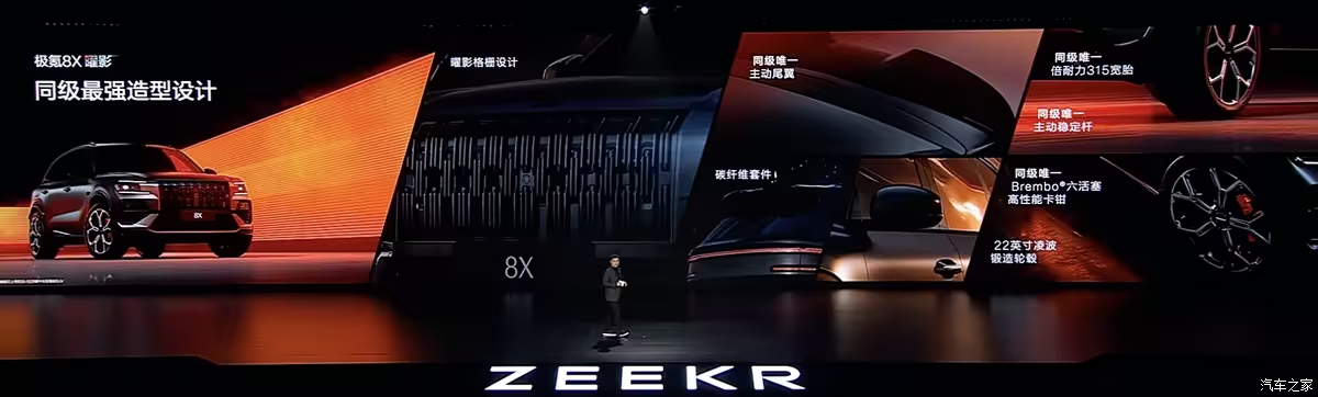 On March 16th, we learned from official sources that the ZEEKR 8X has officially started pre-sales, offering four models. The ZEEKR 8X will officially launch in the second quarter. The new vehicle is built on the SEA-S Super Hybrid architecture, utilizing a 900V high-voltage structure. The top-of-the-line model will be equipped with a three-motor megawatt electric drive system and will debut the next-generation G-ASD advanced driver assistance system. Additionally, the official ZEEKR 8X Dawn model, also equipped with three motors, features exclusive configurations including carbon fiber components and Brembo six-piston brake calipers.